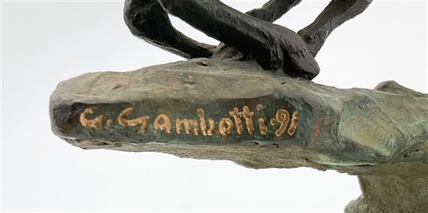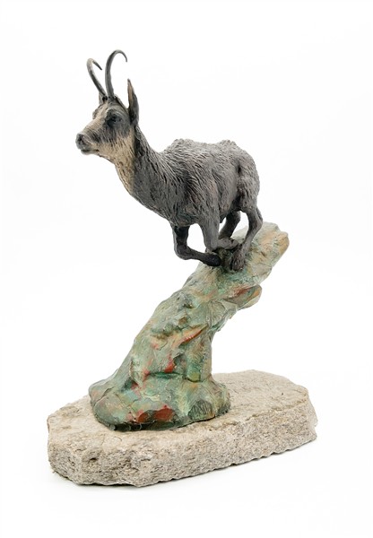 Corrado Gambotti "Camoscio" 1991 scultura in bronzo su base in pietra (cm 25x20x