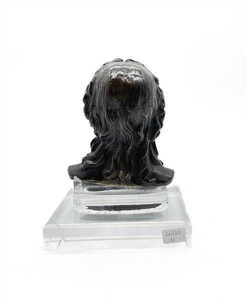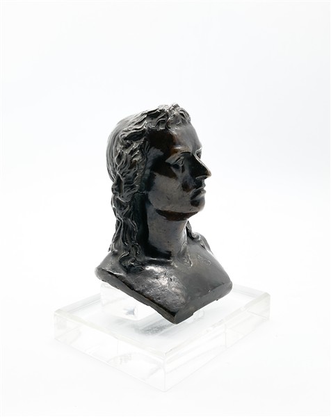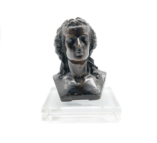 Friedrich Schiller, mezzobusto in bronzo patinato (h cm 17) poggiante su base in plexiglass (difetti)