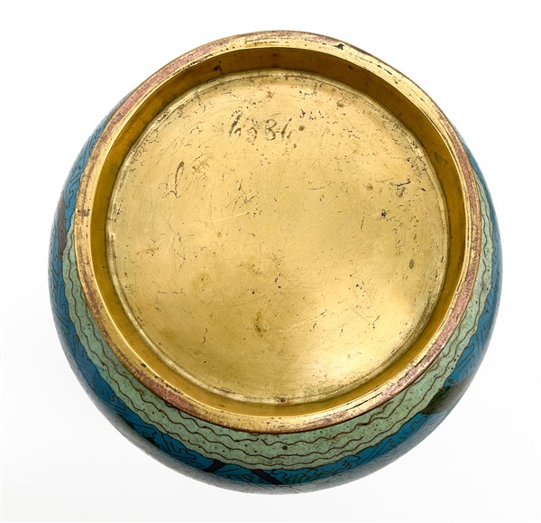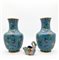 Lotto composto da due vasi in metallo smaltato cloisonnè con decoro floreale su