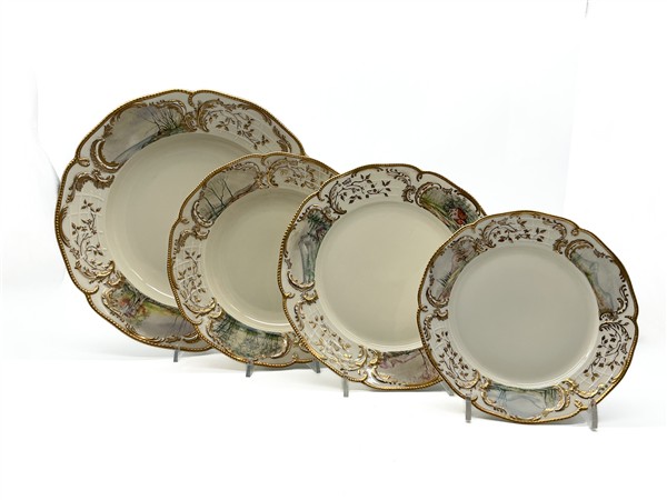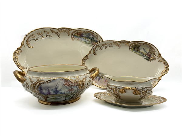 Rosenthal Servizio per la tavola in porcellana dipinta a paesaggi nelle bordure