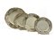 Servizio per la tavola in porcellana dipinta a paesaggi nelle bordure entro riserve con profili in oro, composto da trentasei piatti piani e diciotto fondi, diciotto piattini da frutta, due piatti da portata tondi due ovali di differente capienza, zuppiera, insalatiera e salsiera biansata bivalve.