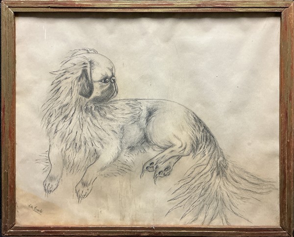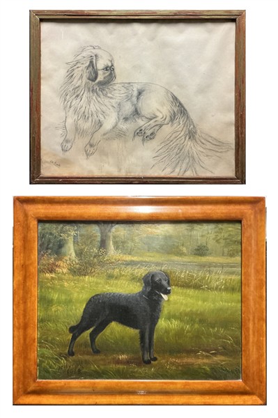 Lotto composto da un olio su tela e un carboncino su carta di diversi autori del secolo XX, raffiguranti "Cani" (cm max 47x60)