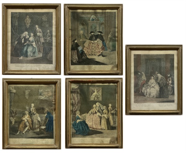 Da Pietro Longhi, autori vari, secolo XVIII. Gruppo di cinque incisioni all'acq