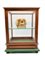 Modello anatomico di teschio in cera entro teca ad uno sportello in legno e rip