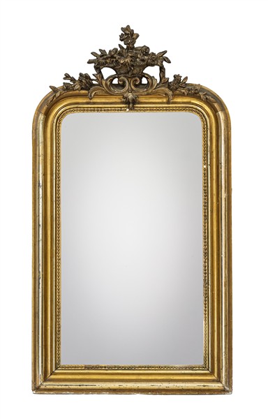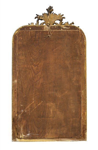 Caminiera in legno dorato con cimasa in pastiglia a vaso fiorito. Fine secolo XIX (cm 89x48) (difetti)