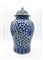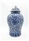 Potiche con coperchio in porcellana dipinta nei toni del bianco e del blu a mot
