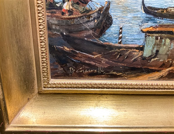 B. Casarelli "Palazzo dei Dogi e Punta della Dogana" olio su cartone (cm 60x8
