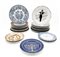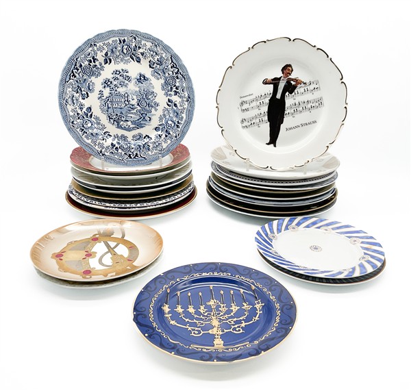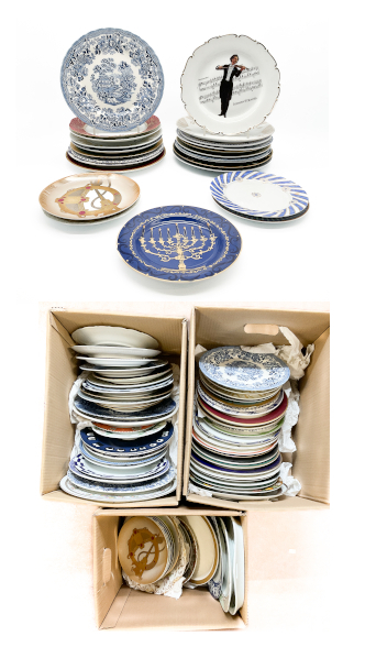 Tre cartoni contenenti numerosissimi piatti decorativi in porcellana di manifat