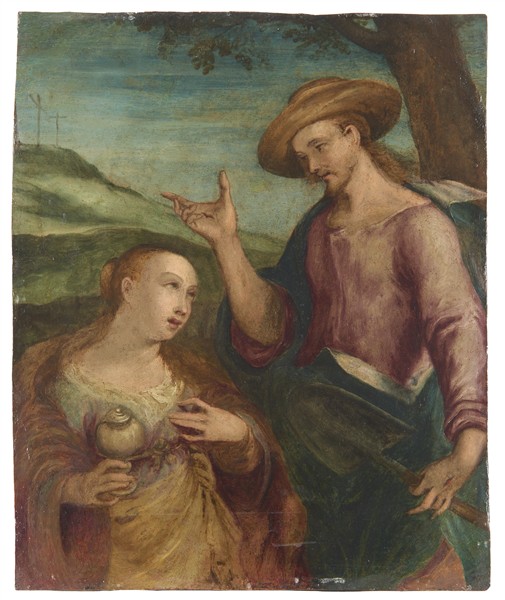 Ignoto "Noli me tangere" olio su rame (cm 29x24) in cornice dorata (restauri)