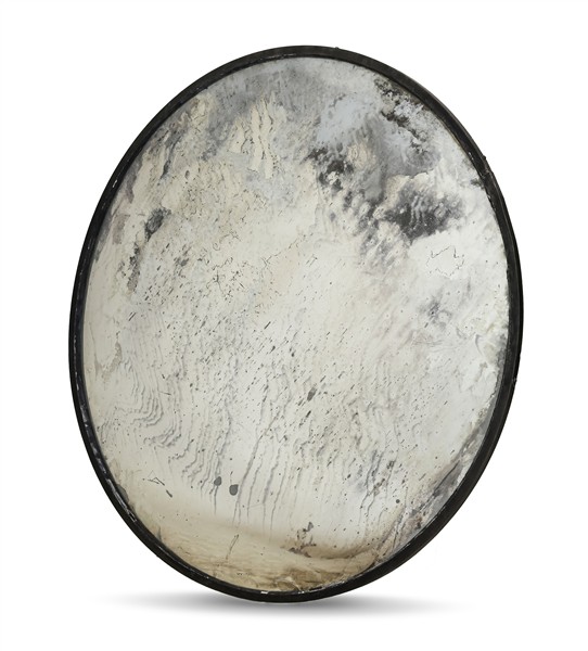 Grande specchio stradale leggermente convesso di forma circolare in cornice di ferro. Inghilterra, prima metà del secolo XX (d cm 123) (difetti)