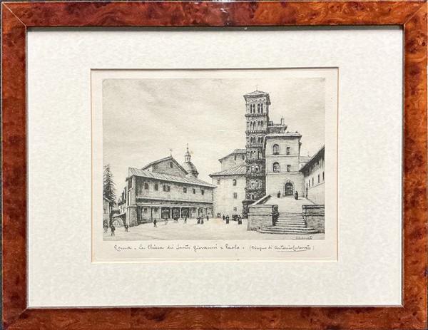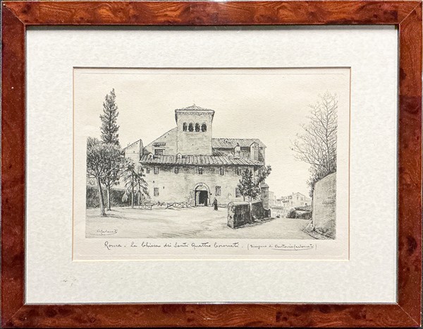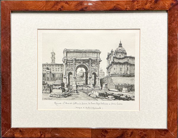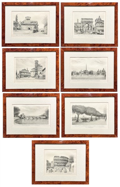 Lotto composto da sette riproduzioni a stampa raffiguranti Scorci romani da dis