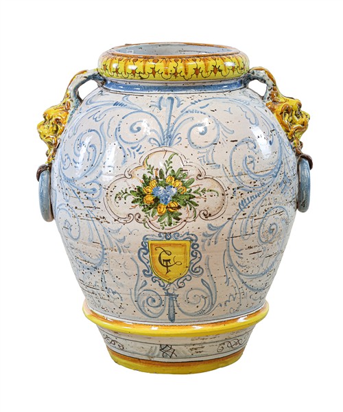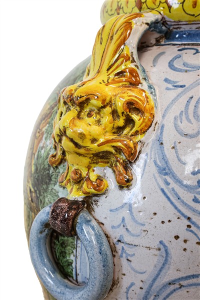Lot 1422 | Grande orcio biansato in maiolica dipinta in policromia con fronte decorato a p
