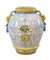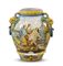 Grande orcio biansato in maiolica dipinta in policromia con fronte decorato a p