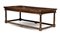 Tavolo in noce ed altre essenze con gambe a colonna tornita riunite da traverse