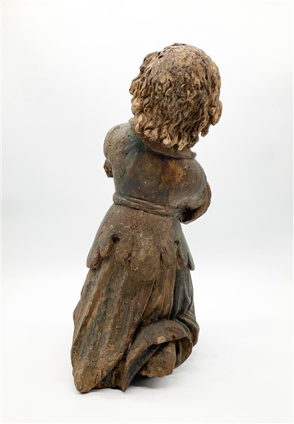 Arte del secolo XVIII. Scultura a tuttotondo di angelo orante in legno laccato in policromia (h cm 49) (difetti, mancanze e restauri)