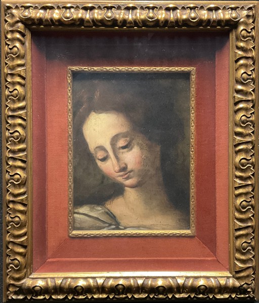 Ignoto "Testa femminile" olio su tavola (cm 26x20) in cornice dorata a teca (d