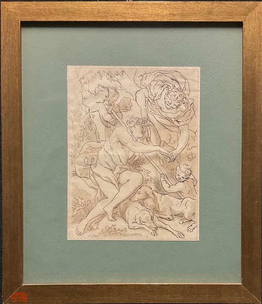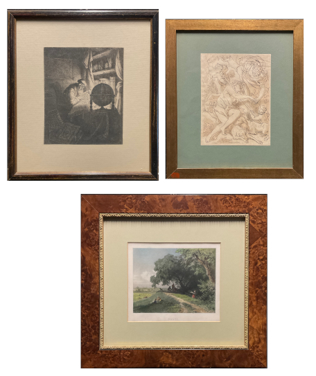 Lotto composto da un'acquaforte raffigurante "Studioso", una stampa colorata raffigurante "Passaggio" e un'acquaforte da un disegno barocco di scuola genovese raffigurante "Putti", di misure differenti