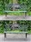 Coppia di panchine da giardino in ghisa verniciata con schienale sagomato a tra