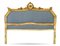Testiera da letto in legno intagliato e dorato con cimasa traforata a volute e