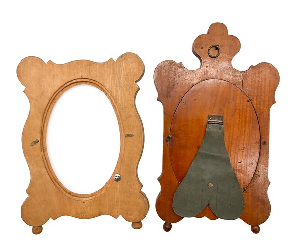 Manifattura veneziana, secolo XX. Due cornici portafoto di forma sagomata decor