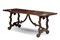 Tavolo fratino in legni vari con piano rettangolare, gambe a lira e traverse sa