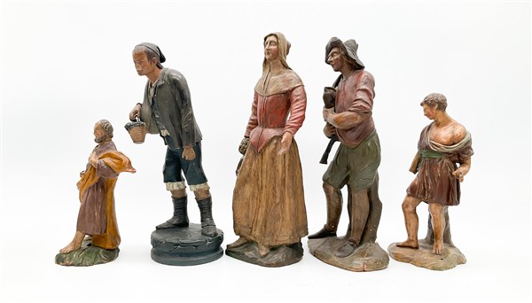 Arte del secolo XIX. Lotto composto da cinque diverse figure presepiali in terr