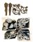Quattro cartoni contenenti numerosi fregi in legno intagliato a mascheroni con