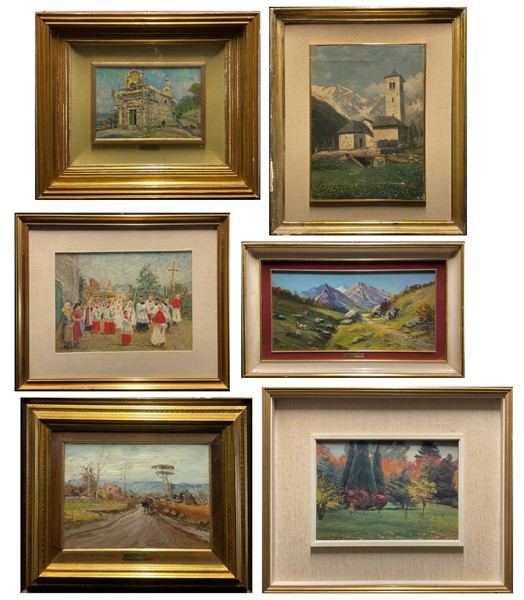 Scuola del secolo XX, Lotto composto da sei dipinti ad olio su diversi supporti