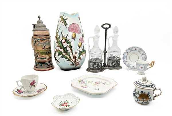 Cartone contenente numerosi oggetti in porcellana di manifatture e decori differenti (difetti)