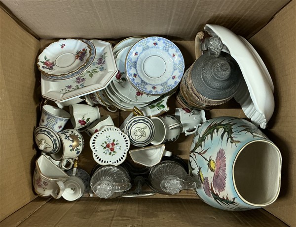 Cartone contenente numerosi oggetti in porcellana di manifatture e decori diffe