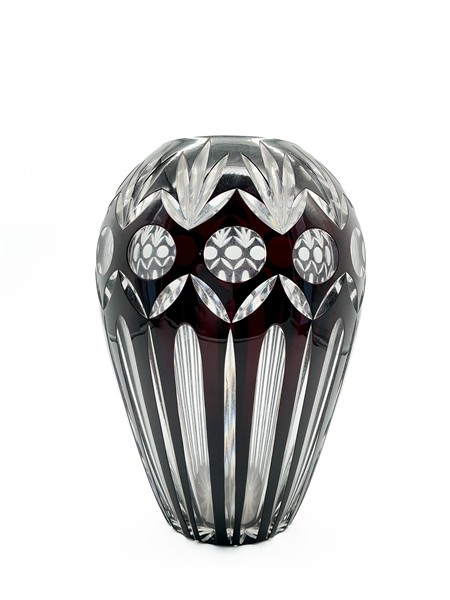 Vaso in cristallo molato a motivi geometrici (h cm 30) (lievi difetti)