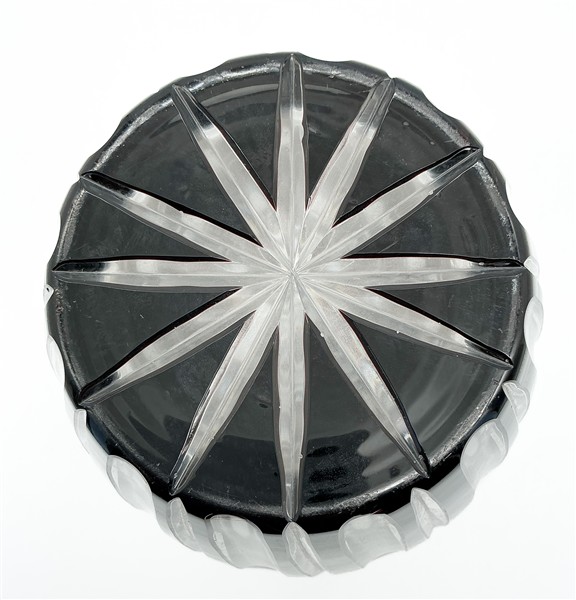 Manifattura di Boemia. Vaso in cristallo molato a motivi geometrici (h cm 30)