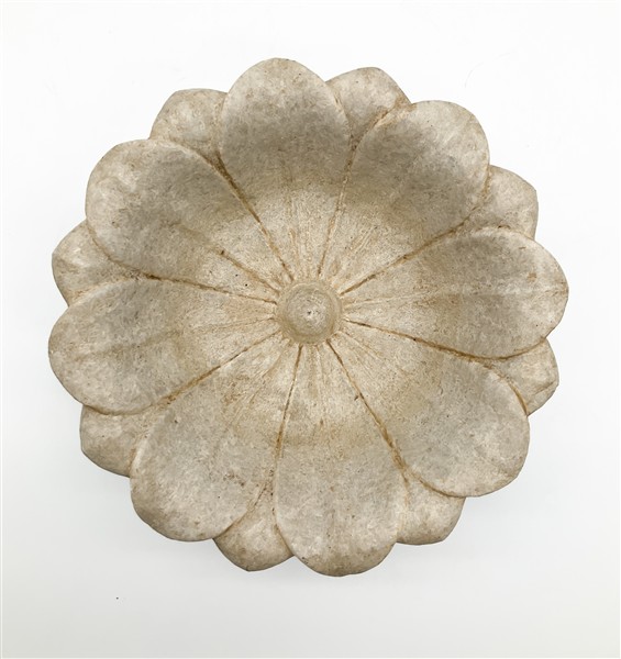 Vasca in marmo scolpito a corolla di petali (h cm 12; d cm 27) (difetti)