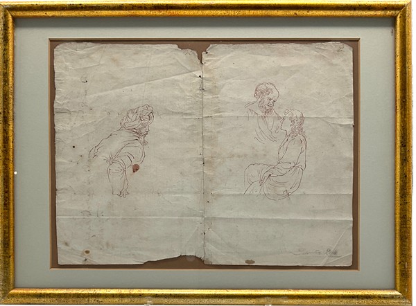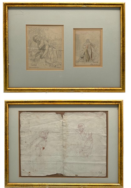 Lotto composto da due disegni del secolo XIX (firma indecifrata), montati in un'unica cornice, e un disegno a penna di autore anonimo iscritto "Salvator Rosa", di misure differenti