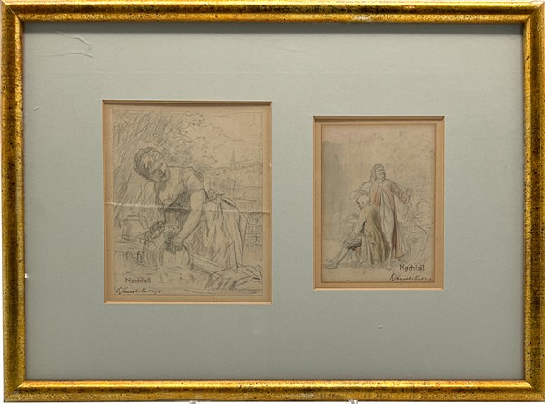 Lotto composto da due disegni del secolo XIX (firma indecifrata), montati in un