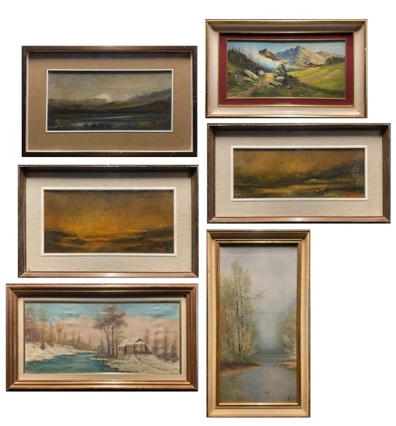 Lotto composto da sei dipinti ad olio raffiguranti "Paesaggi" di diversi autori