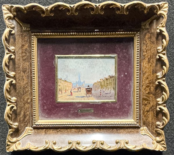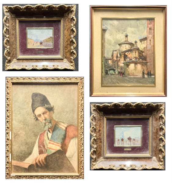Lotto composto da tre dipinti ad olio e un acquerello di diversi autori, sogget