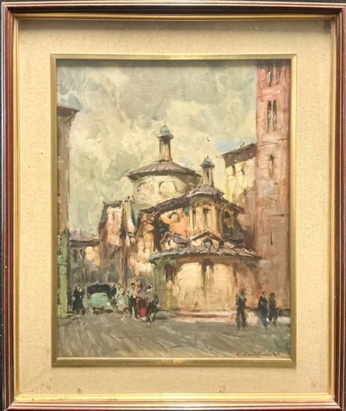 Lotto composto da tre dipinti ad olio e un acquerello di diversi autori, soggetti, misure e supporti (cm max 60x42)