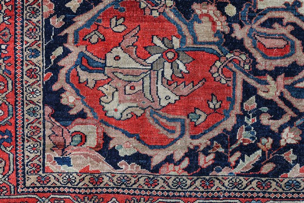 Tappeto Sarouk, Persia, fine secolo XIX. Decoro con grande medaglione rosso con