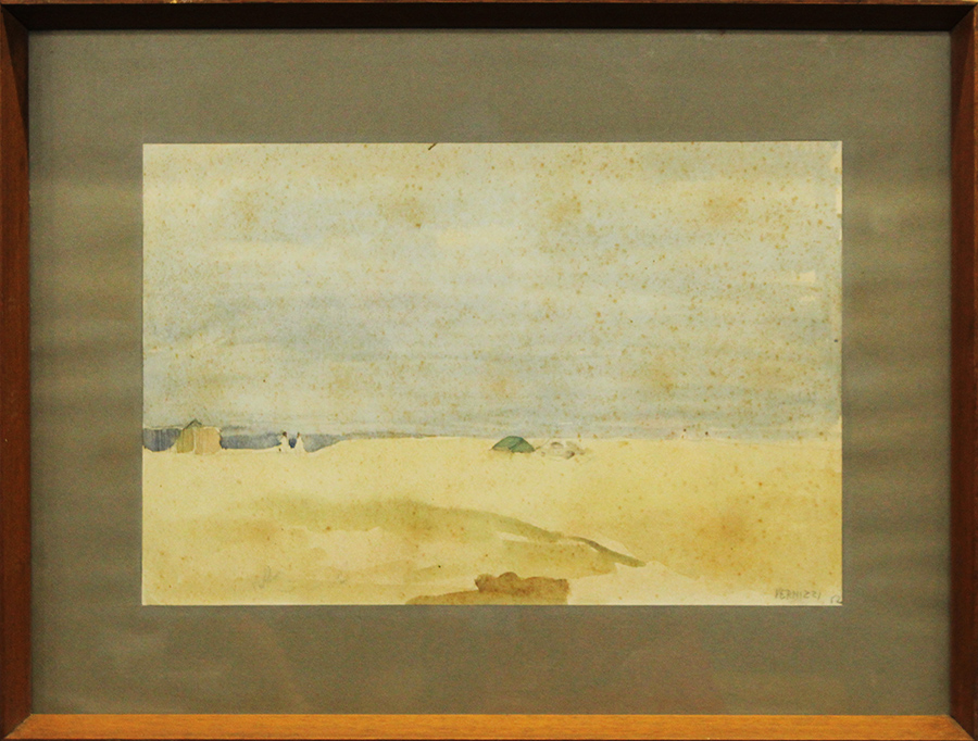 VERNIZZI, 1962, acquarello su cartoncino, dim 30x45 cm. Presenta fioritura. Opera con cornice.