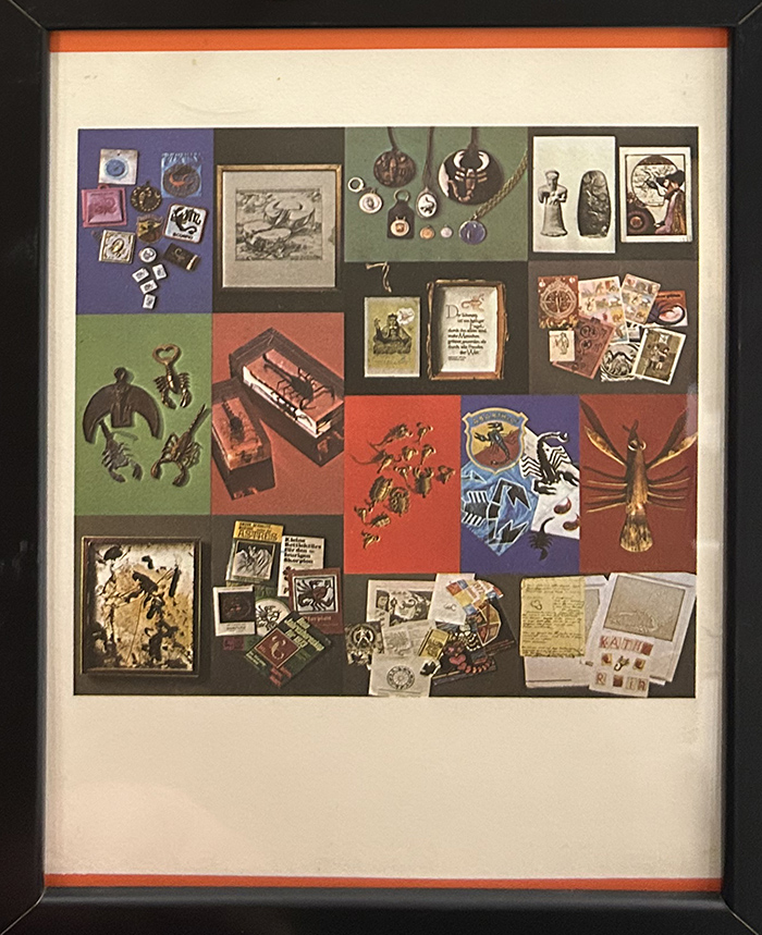 DANIEL SPOERRI, "Lo scorpione", riproduzione fotolitografica (4 colori offset), cm 30x21, con cornice 33x24,5 cm. Opera eseguita per la collezione "Lo zodiaco". 5000 esemplari numerati da 1 a 5000, recano la firma autografa dell'artista. Opera con cornice