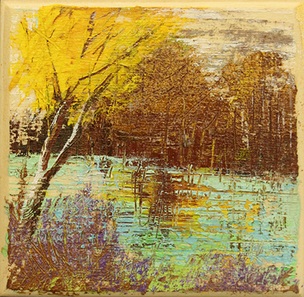 MARIO SOAVE, "Crepuscolo", anni 2000, olio su tavola, 10x10 cm. Al verso: firma, titolo e dichiarazione di autenticità da parte dell'artista. Certificato di provenienza della Daliano Ribani Arte. Opera senza cornice.