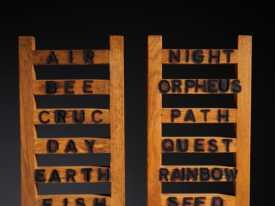 TILSON JOE (n. 1928) ALPHABET LADDERS AIR/ZIGGURATT. 2009. scultura in legno. Cm 53,00 x 75,00 x 15,00. sotto la base: firma, titolo, data ed etichetta Galleria d'arte Marlborough, Roma