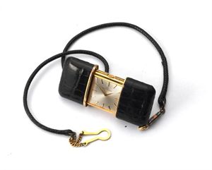 MOVADO Ermeto, orologio da viaggio in oro giallo rivestita in pelle di...