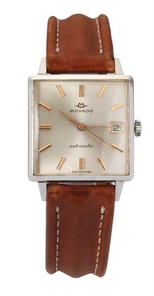 MOVADO Solo tempo anni '60 "Cioccolatone" Dimensioni 30 x 30 mm Cassa in due corpi, quadrante con indici applicati. Movimento automatico. An only time 60's "Cioccolatone"