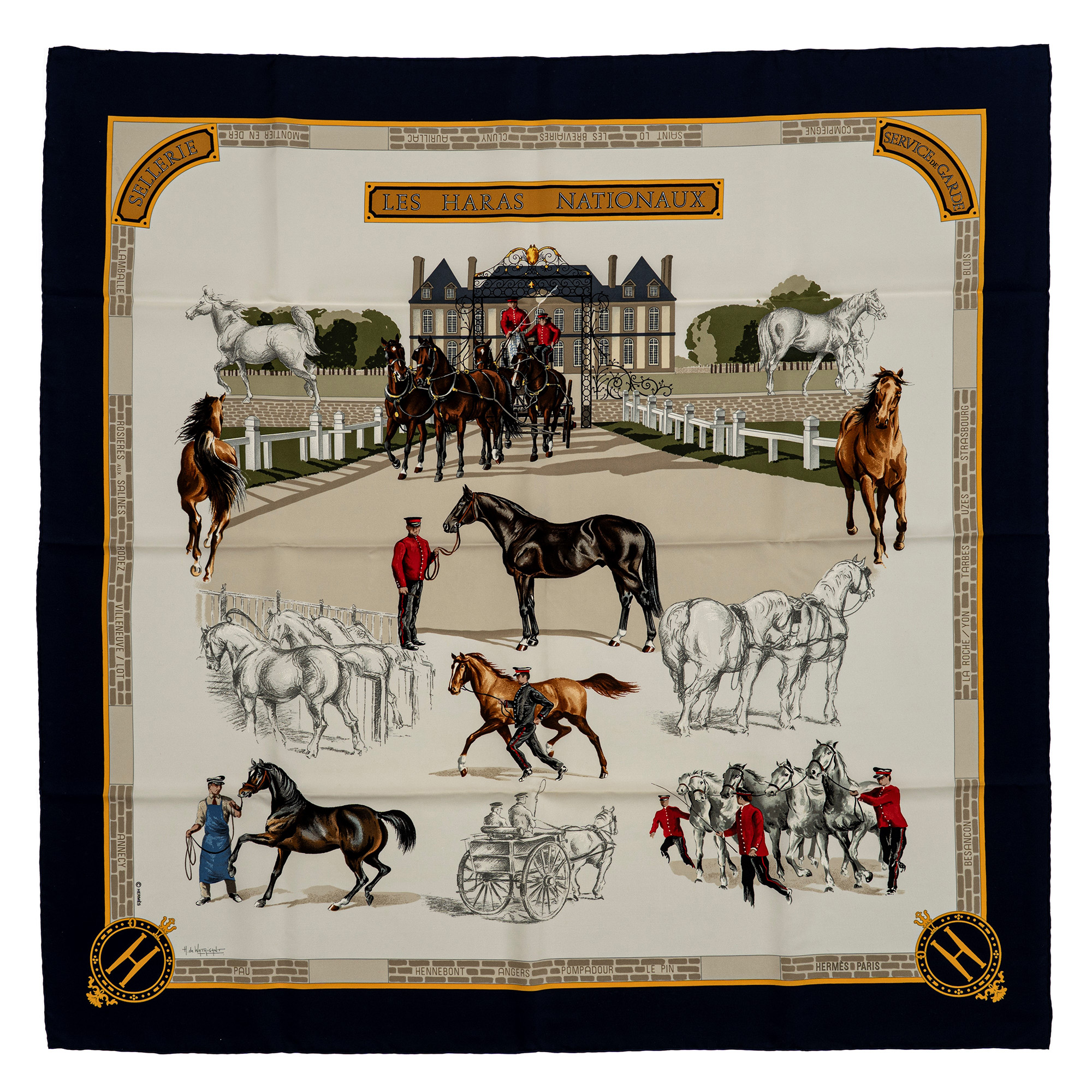 in seta su fondo color panna, bordo color blu, Hubert de Vatrigant, con scatolain seta su fondo color panna, bordo color blu, Hubert de Vatrigant, con scatola