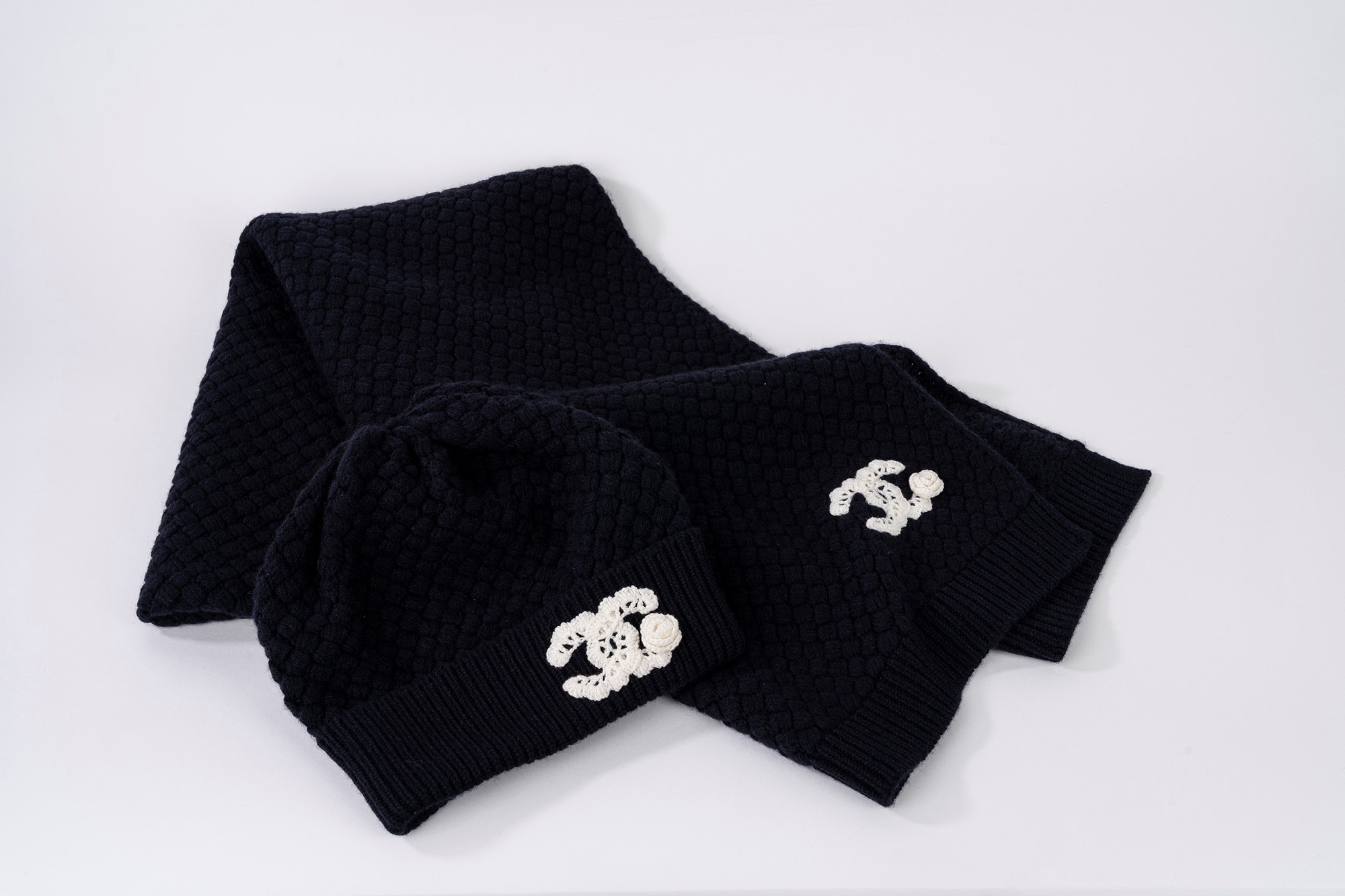 Chanel - Lotto composta da cappello cloche e sciarpa