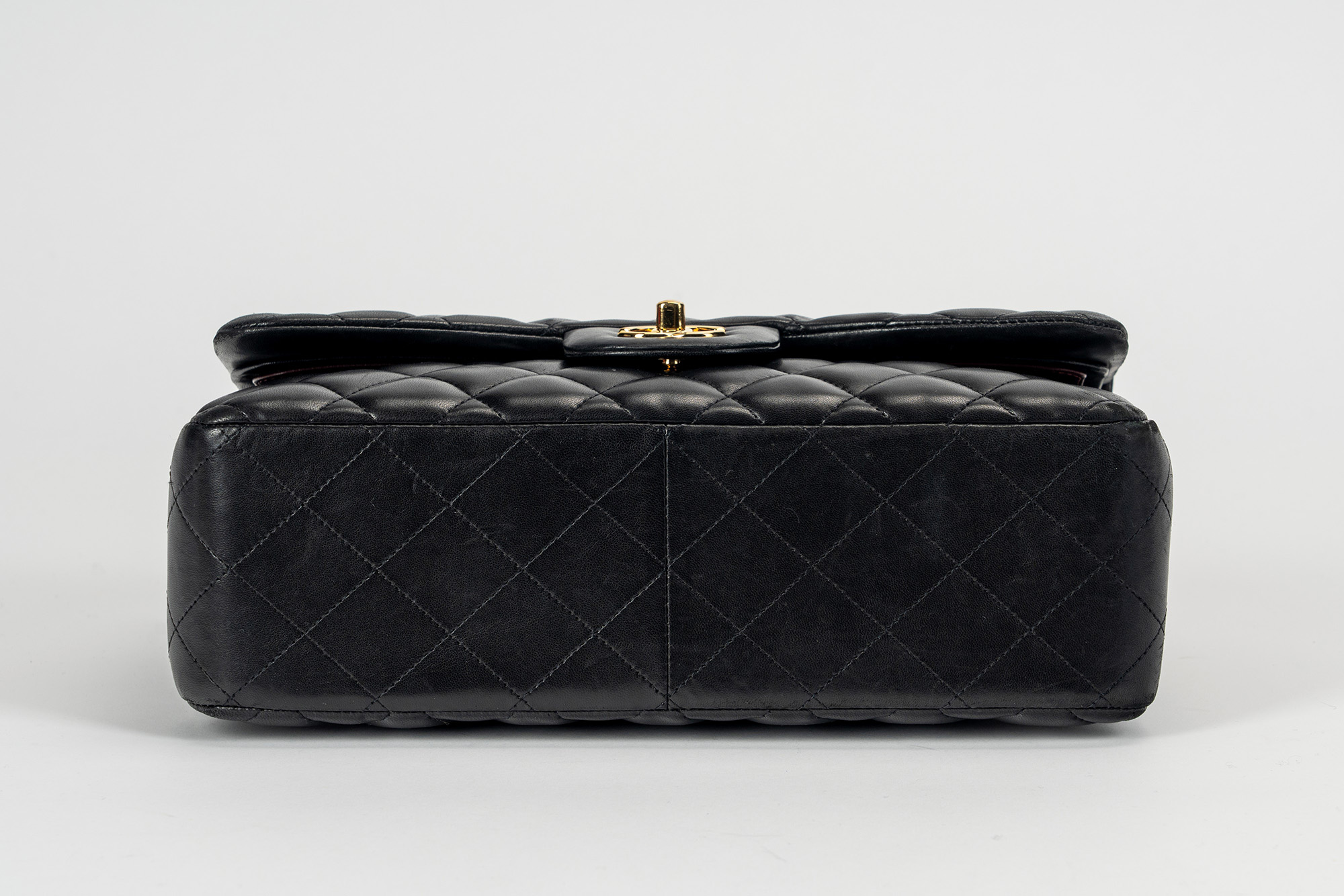 in pelle matelassé color nero, interno in pelle color bordeaux, tracolla a catena e dettagli in metallo dorato, cm 30, con sacchetto (lievissimi segni d'uso)in pelle matelassé color nero, interno in pelle color bordeaux, tracolla a catena e dettagli in metallo dorato, cm 30, con sacchetto (lievissimi segni d'uso)