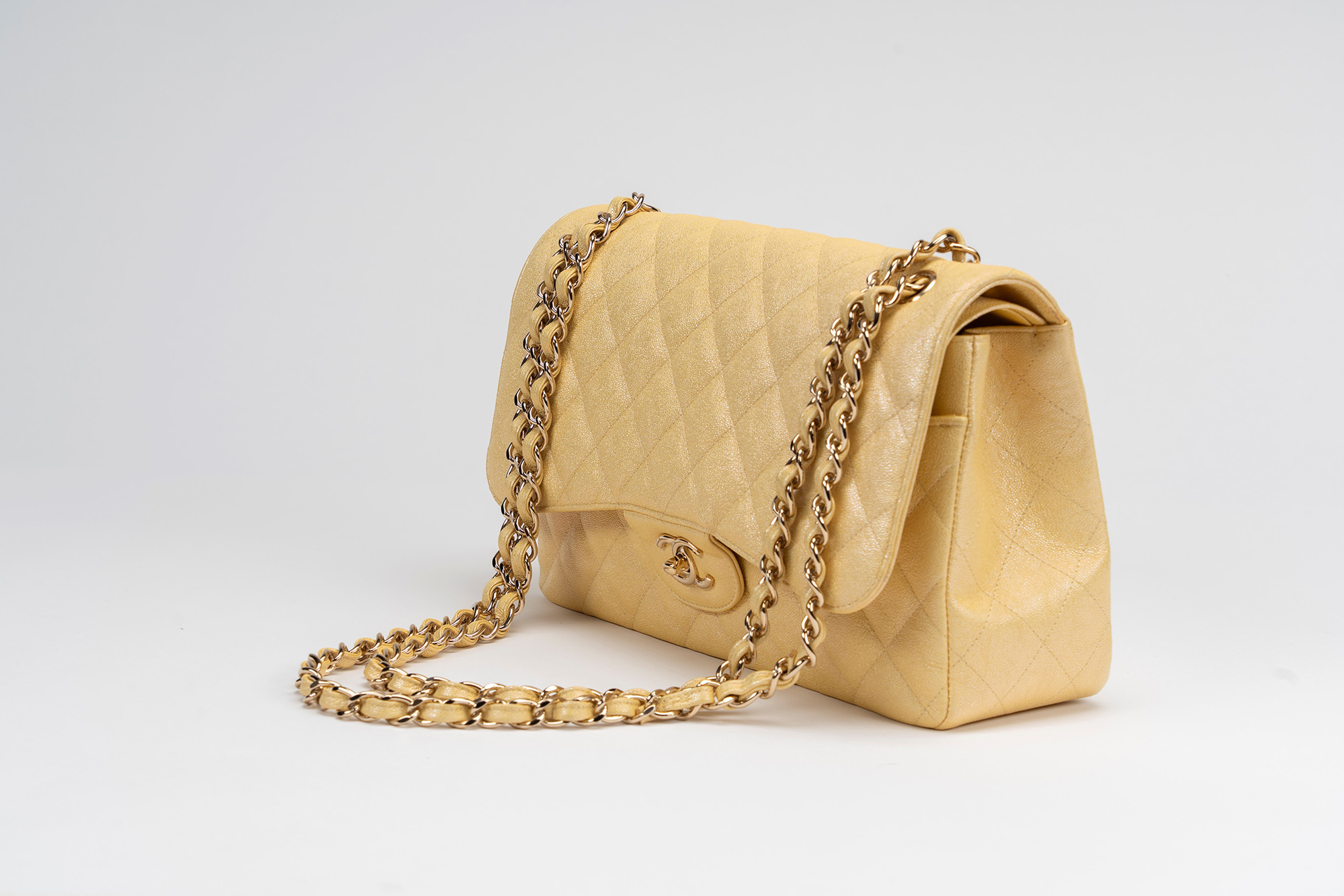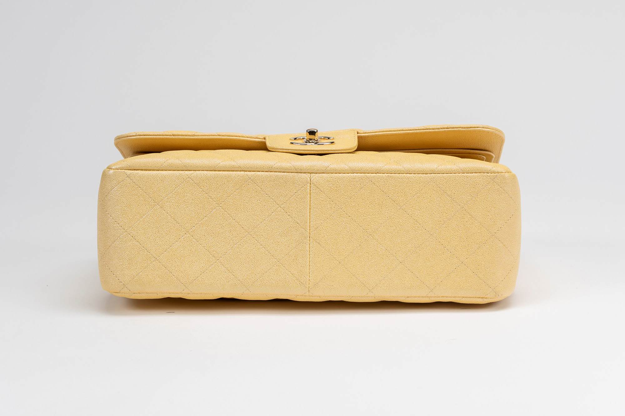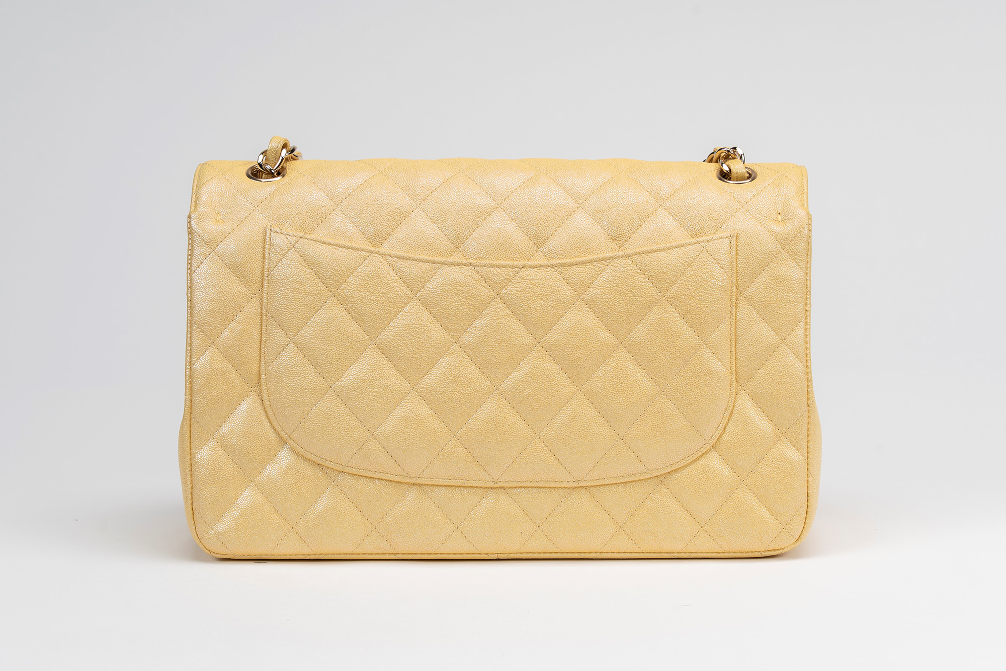 in pelle caviar matelassé color giallo chiaro iridescente, dettagli in metallo dorato, tracolla a catena, cm 30 in pelle caviar matelassé color giallo chiaro iridescente, dettagli in metallo dorato, tracolla a catena, cm 30