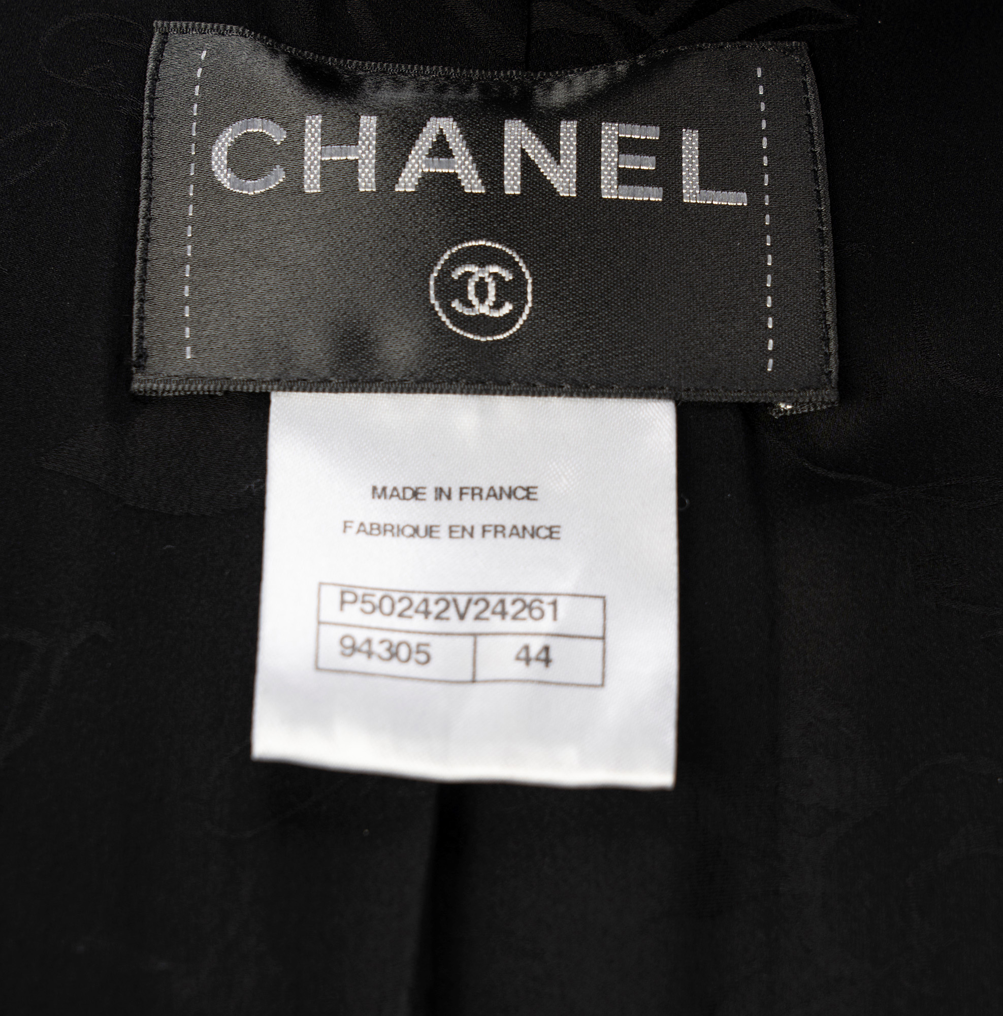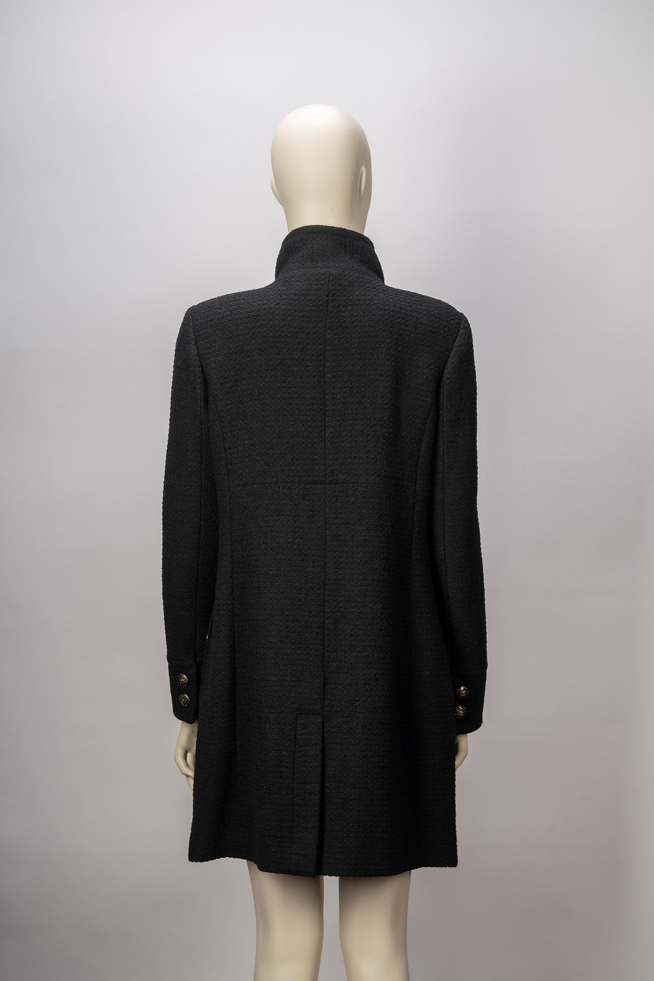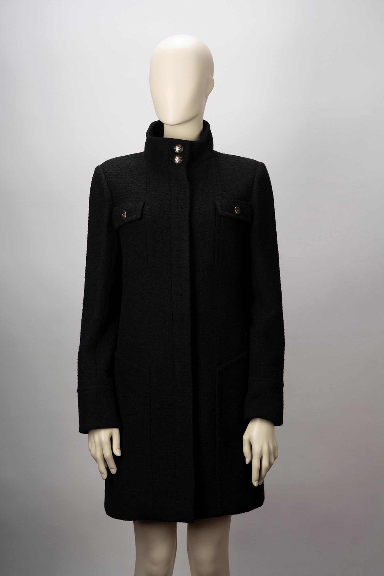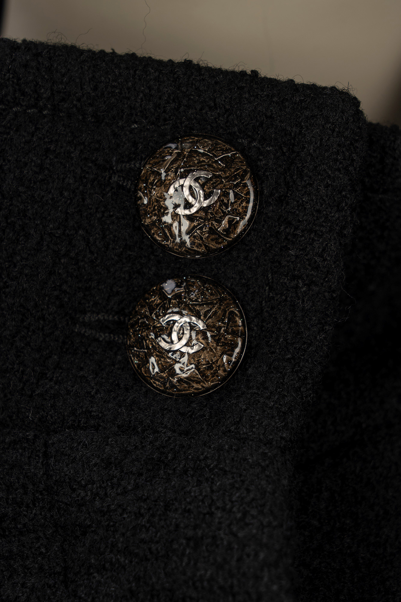in lana bouclé color nero e fodera in seta, bottoni bijoux in metallo smaltato, taglia francese 44in lana bouclé color nero e fodera in seta, bottoni bijoux in metallo smaltato, taglia francese 44